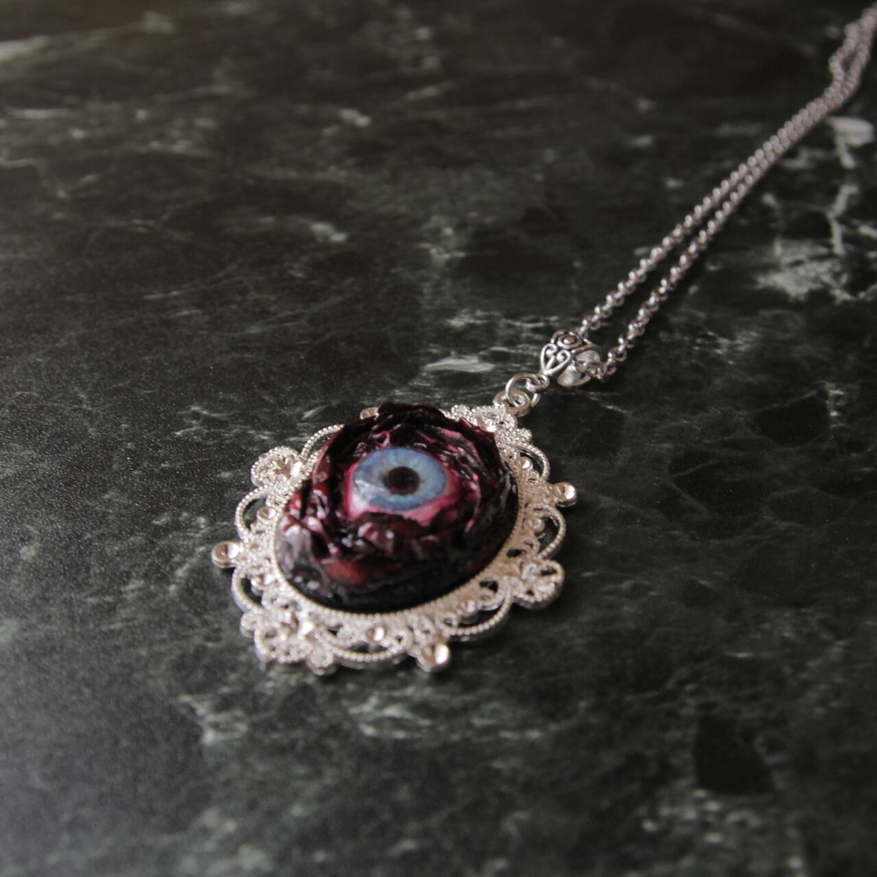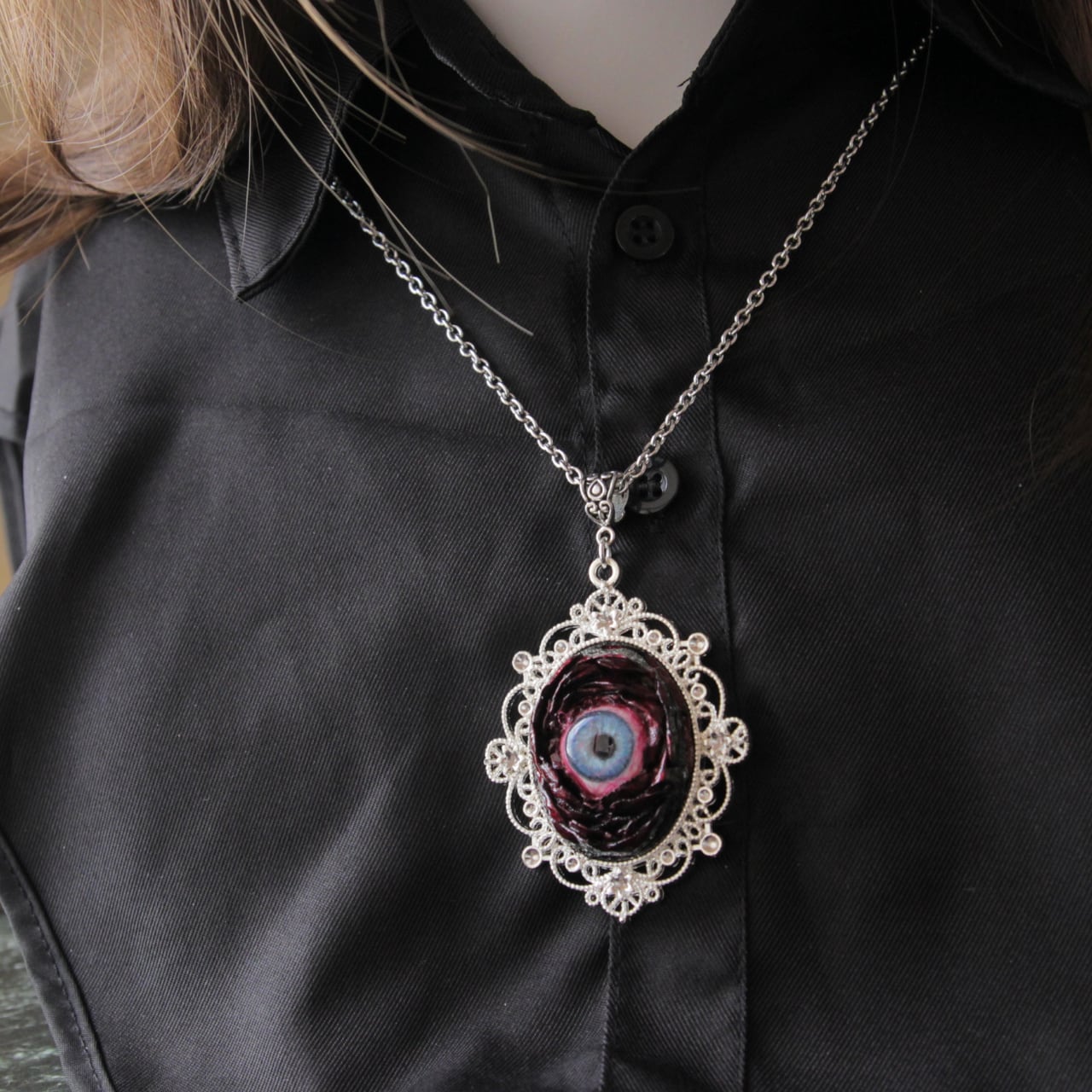 ゴシック ネックレス / ホラーアクセサリー / 目玉アクセサリー / ダークファンタジー / 病みかわ / ゴスロリ / ハンドメイドネックレス / 個性的アクセサリー / 一点物アクセサリー